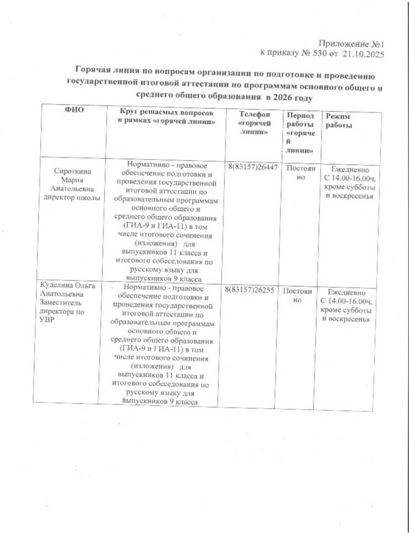 Горячая линия по вопросам организации по подготовке и проведению государственной итоговой аттестации по программам основного общего и среднего общего образования в 2026 году в моу "Гавриловская средняя школа"